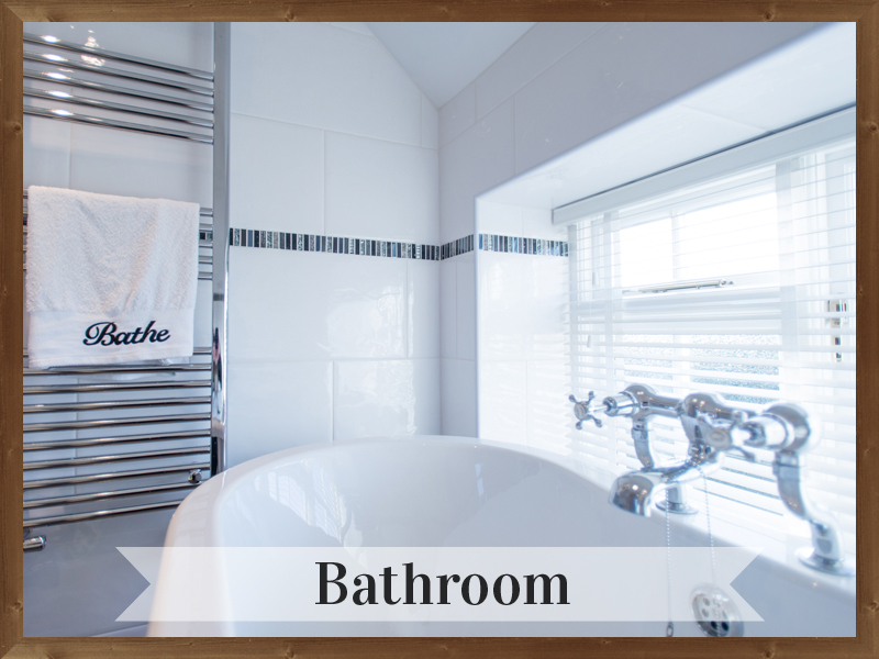 • Feel everything melt away as you sink into our lovely roll top bath, choose from a selection of products in our bathroom basket and feel yourself unwind. When you get out our fluffy warm towels will keep you feeling on cloud nine!